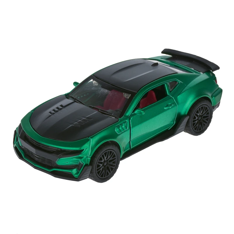ماشین اسپرت شورلت کامارو که در دورنگ زردو نارنجی میباشد دارای قابلیت: در بازشو،صندق باز شو، دارای صدای استارت و تیک آف، صدای ، روشن شدن چراغ ها و حرکت به صورت عقبکش و دارای جنس فلزی باکیفیت است که شبیه سازی شده مدل واقعی می باشد و به جزئیات توجه شده است